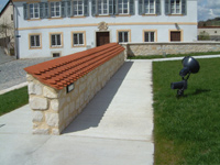 der Mauern verlaufende Rampe als behindertengerechter Zugang. |