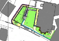 Die vor der historischen Friedhofsmauer liegende Grünfläche