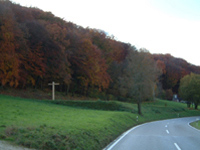 Straße aus weist nur ein Kreuz auf seine Lage hin. |